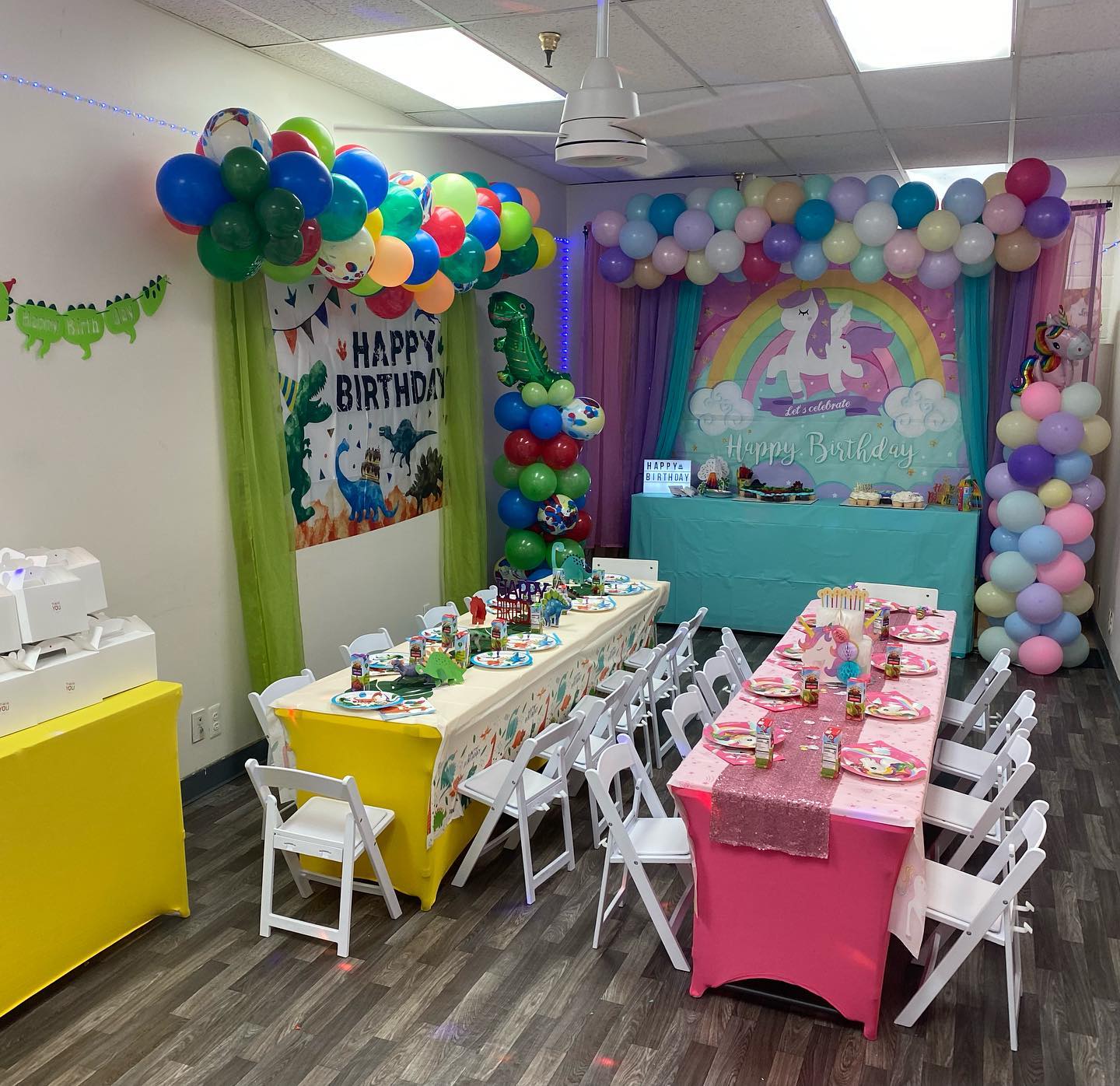 - Two Themes in One!- Have twins or two siblings want to celebrate together? We offer it! Choose 2 themes from our gallery, this is for our themed and Ultimate package. It includes 2 balloon garlands, 2 backdrops, decorations and themed paper goods. Extra fee over the price of the original package: $100.00. Please check out our photo gallery.
